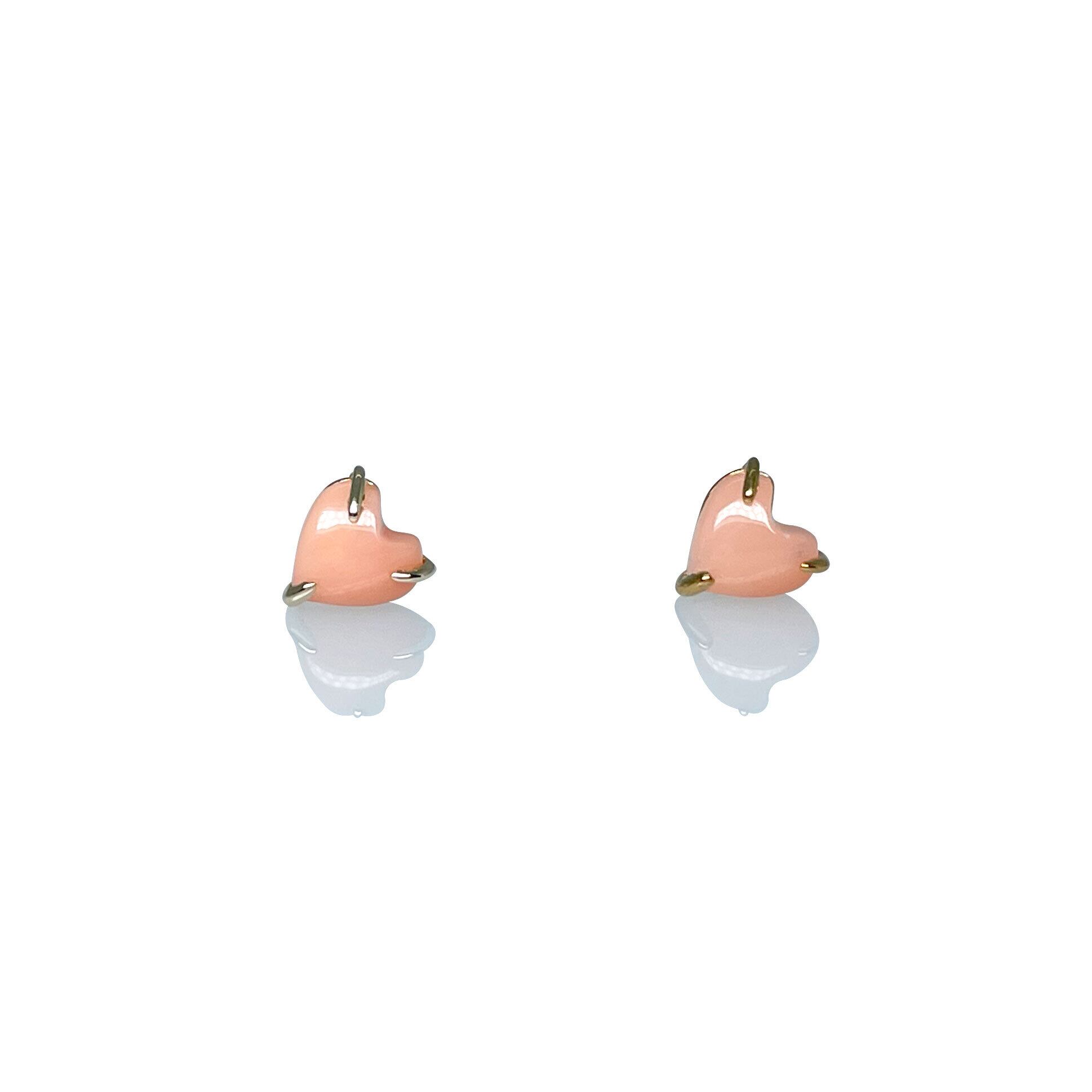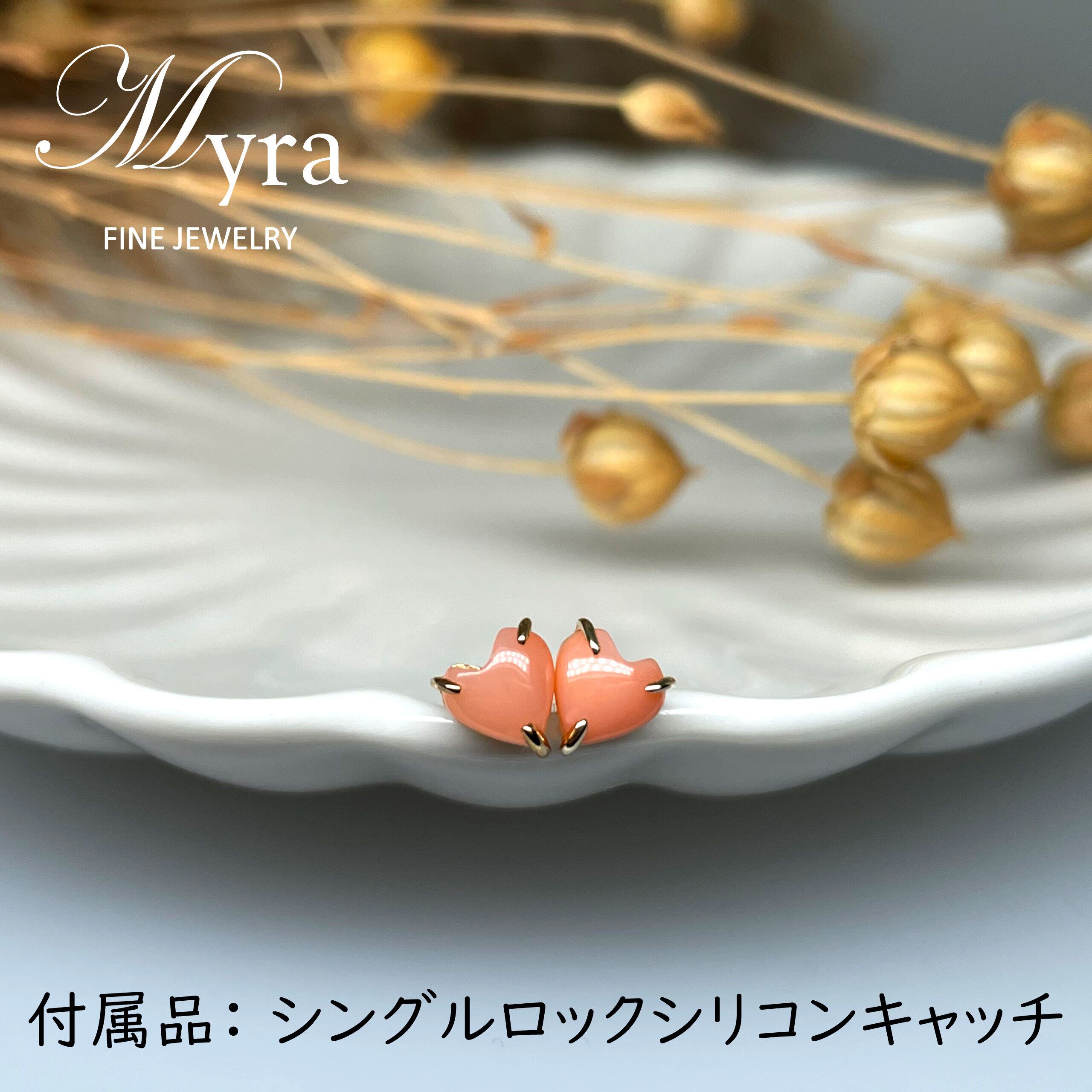 美しいデザインが魅力のK10イエローゴールド製の天然サンゴピアスです!優雅で可愛らしいハート型が耳元を華やかに演出します。